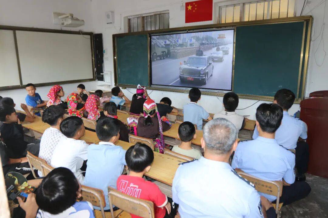 当天,米康教学点教室里热闹非凡,民警与师生们共同观看阅兵仪式,孩子们脸上洋溢着期待与兴奋,眼神中满是对阅兵仪式的好奇。当整齐划一的受阅方队迈着铿锵有力的步伐通过天安门广场时,孩子们被祖国强大的国防力量所震撼,时不时发出阵阵惊叹。