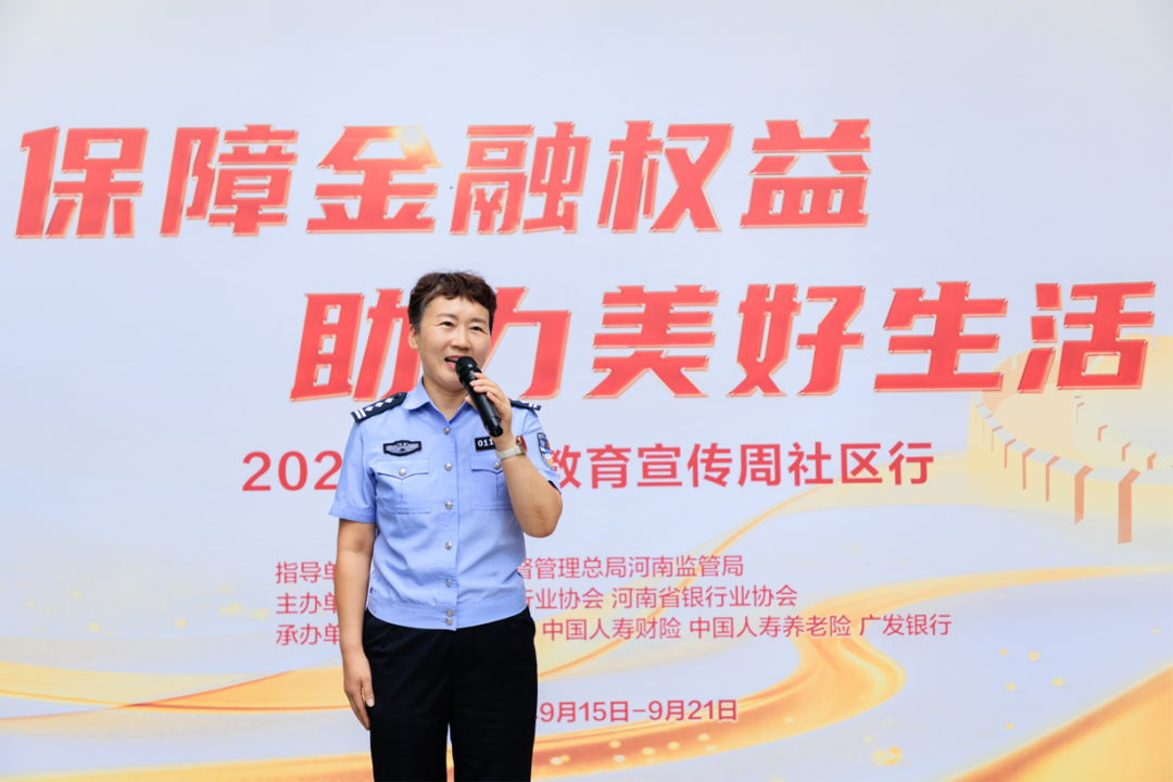 本次活动紧扣“金融为民”主线,聚焦基层社区,特别是老年人、青少年等易受金融风险侵害的群体,通过政企警多方联动,推动金融知识普及和反诈警示教育工作走深走实。来自公安局二七分局的反诈宣传形象大使作为民警代表现场进行反诈宣讲,通过真实案例提醒居民警惕电信网络诈骗,强调金融教育的重要性与紧迫性,增强自我保护意识。