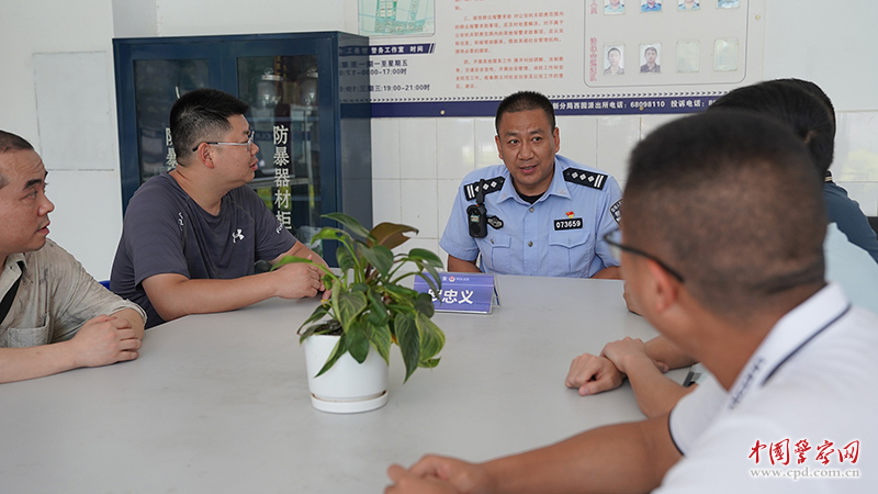 罗忠义对园区兼职网格员开展安全防范宣传。(成都市公安局高新区分局供图)