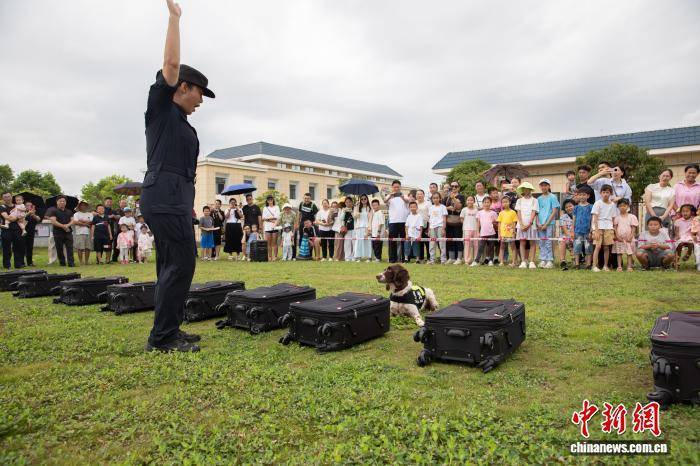 图为警犬执行箱包搜爆任务表演。胡玄德 摄