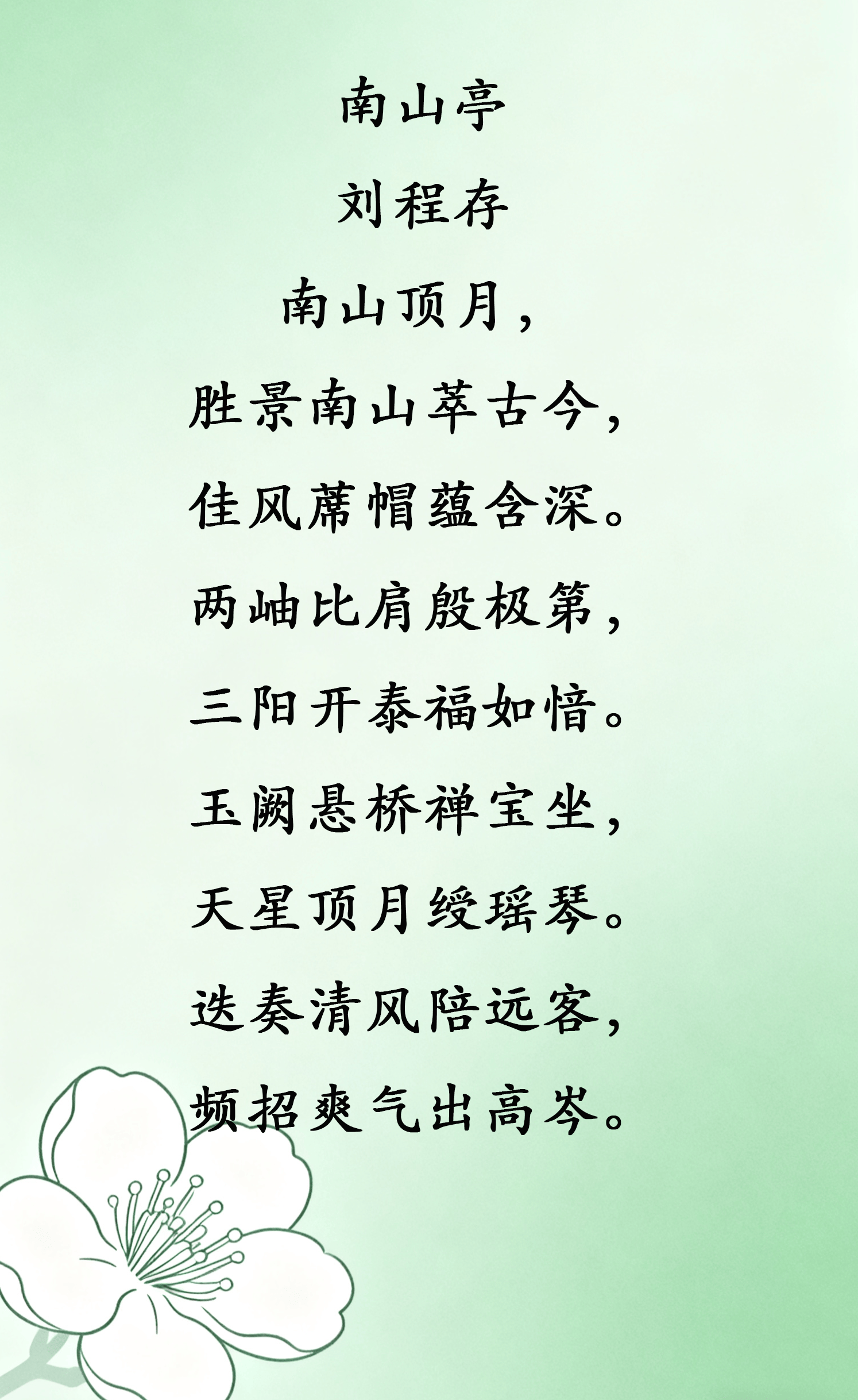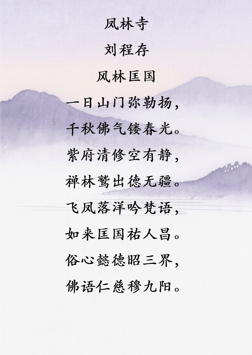 在用词和修辞上,刘程存老师的语言极具画面感和意境。如“天籁楼头沁笛篪”,将“天籁”与“笛篪”的搭配使得诗句富有音乐感,传达出如同自然之音般的清雅与和谐。而“八景流源风拂彩”通过动词“流源”和“拂彩”的运用,生动展现了景色的流动感和活力,使得整首诗不仅有视觉的享受,还有感官的全方位体验。