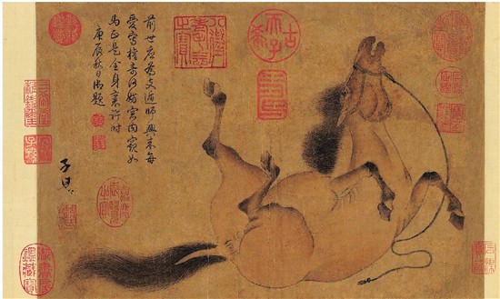 元 赵孟頫 滚尘马图 设色纸本 手卷 引首:54.5×22.5cm 画心:38×25.5cm
