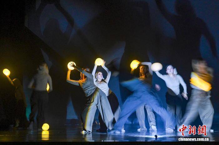 9月26日晚,第五届青年跨界舞蹈艺术周在重庆渝北文化剧场圆满落幕。该艺术周聚焦青年舞蹈跨界创作,以“无界”为核心理念,鼓励青年创作者勇敢“跨界”。当晚的闭幕式压轴环节《无界》作品展,汇聚了来自国内外的17部优秀作品,将现代舞与戏剧、影像、装置、声音艺术等多元媒介有机融合,展现了青年创作者对艺术边界的积极探索。图为武汉传媒学院选送作品《光蚀》亮相作品展。中新社记者 何蓬磊 摄