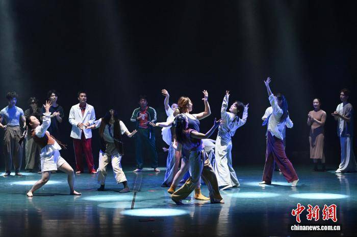 9月26日晚,第五届青年跨界舞蹈艺术周在重庆渝北文化剧场圆满落幕。该艺术周聚焦青年舞蹈跨界创作,以“无界”为核心理念,鼓励青年创作者勇敢“跨界”。当晚的闭幕式压轴环节《无界》作品展,汇聚了来自国内外的17部优秀作品,将现代舞与戏剧、影像、装置、声音艺术等多元媒介有机融合,展现了青年创作者对艺术边界的积极探索。图为广州大学选送作品《循复·三行》亮相作品展。中新社记者 何蓬磊 摄