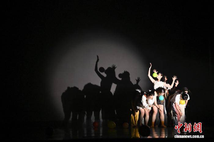 9月26日晚,第五届青年跨界舞蹈艺术周在重庆渝北文化剧场圆满落幕。该艺术周聚焦青年舞蹈跨界创作,以“无界”为核心理念,鼓励青年创作者勇敢“跨界”。当晚的闭幕式压轴环节《无界》作品展,汇聚了来自国内外的17部优秀作品,将现代舞与戏剧、影像、装置、声音艺术等多元媒介有机融合,展现了青年创作者对艺术边界的积极探索。图为广州大学选送作品《不倒翁》亮相作品展。中新社记者 何蓬磊 摄