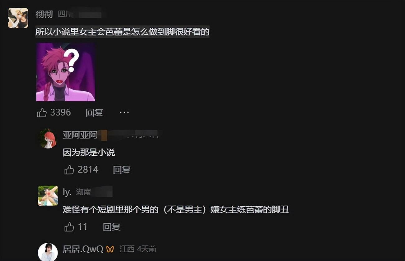 也有网友说:所以小说里女主会芭蕾是怎么做到脚很好看的?