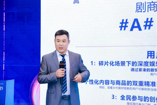 剧商(深圳)影视文化有限公司、广告部总经理刘辉发表了《短剧为品牌带来高速发展新路径》的演讲,他表示剧商影视app = 企业增量新利器,“降低精准获客成本”,在流量成本攀升、用户注意力分散的当下,抢占内容社交新红利“省钱,省事,省力”,以“内容+社交+数据”为引擎,为企业打造品效合一的增长解决方案。