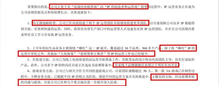 光线传媒在财报中明确表示,自己正处于从“高端内容提供商”向“IP的创造者和运营商”转型的过程中,而为了推动这一过程,公司已在内部组建了两个IP运营团队并将继续组建更多团队。目前,除了将“哪吒”IP的运营日常化外,还开启了对“大鱼海棠”“张缤智和王焕君”等IP的运营工作。