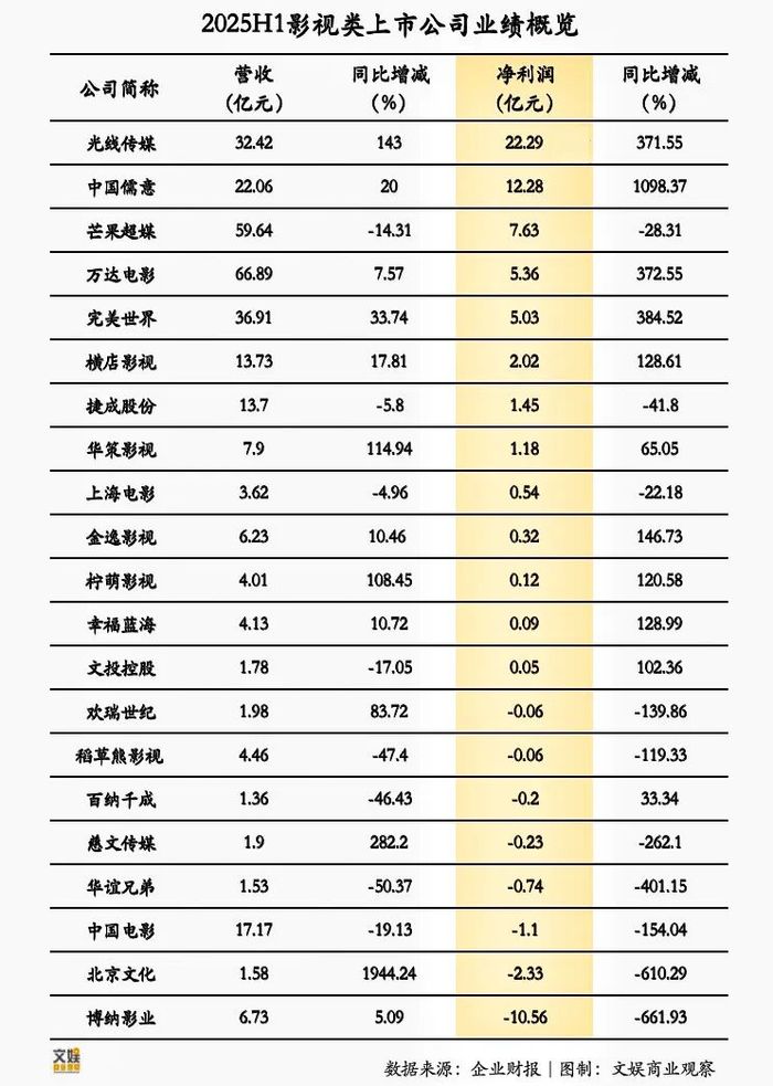 - 2025-09-04影视股上半年业绩分化:院线公司受益电影市场回暖,光线传媒大赚22亿领跑