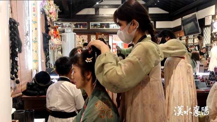 富有盛唐风情的襄阳唐城景区,已成为300多部影视作品的取景地。从《梦华录》到《庆余年》,从《国色芳华》到《长安的荔枝》,每部热播剧的话题与流量飙升时,唐城景区都会迎来一波“泼天的富贵”。《长安的荔枝》上线热映之际,唐城景区顺势推出“影视打卡地图”,多家汉服店同步上线影视同款妆造、跟拍服务。贞观霓裳汉服中心营销主管宋春燕告诉记者,剧中同款妆造,在她这里都可以复刻,现在网上订购同比增长15%。